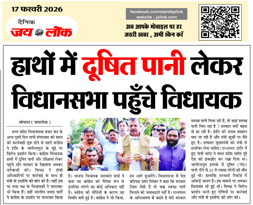 हाथों में दूषित पानी लेकर विधानसभा पहुँचे विधायक
