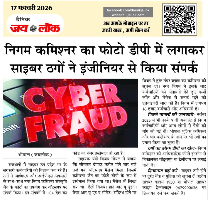 निगम कमिश्नर का फोटो डीपी में लगाकर साइबर ठगों ने इंजीनियर से किया संपर्क