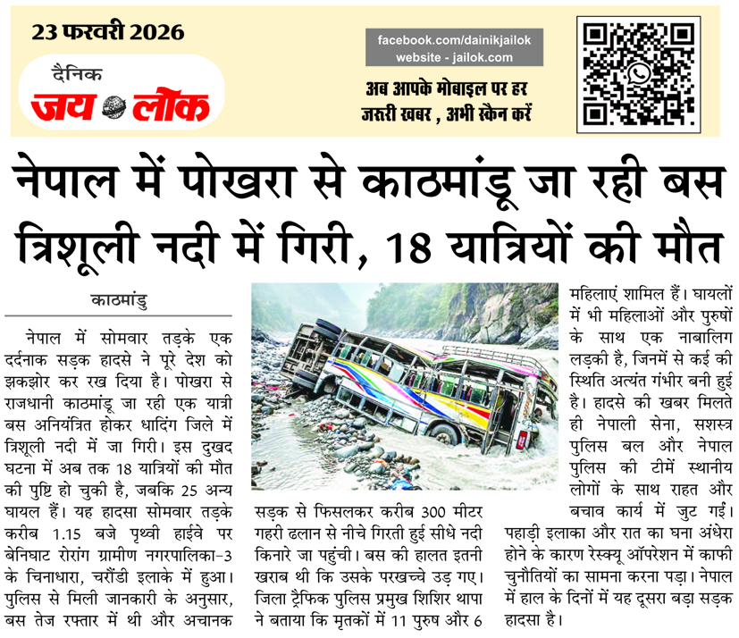 नेपाल में पोखरा से काठमांडू जा रही बस त्रिशूली नदी में गिरी, 18 यात्रियों की मौत
