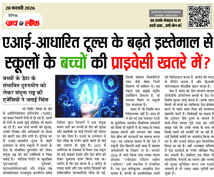 एआई-आधारित टूल्स के बढ़ते इस्तेमाल से स्कूलों के बच्चों की प्राइवेसी खतरे में?