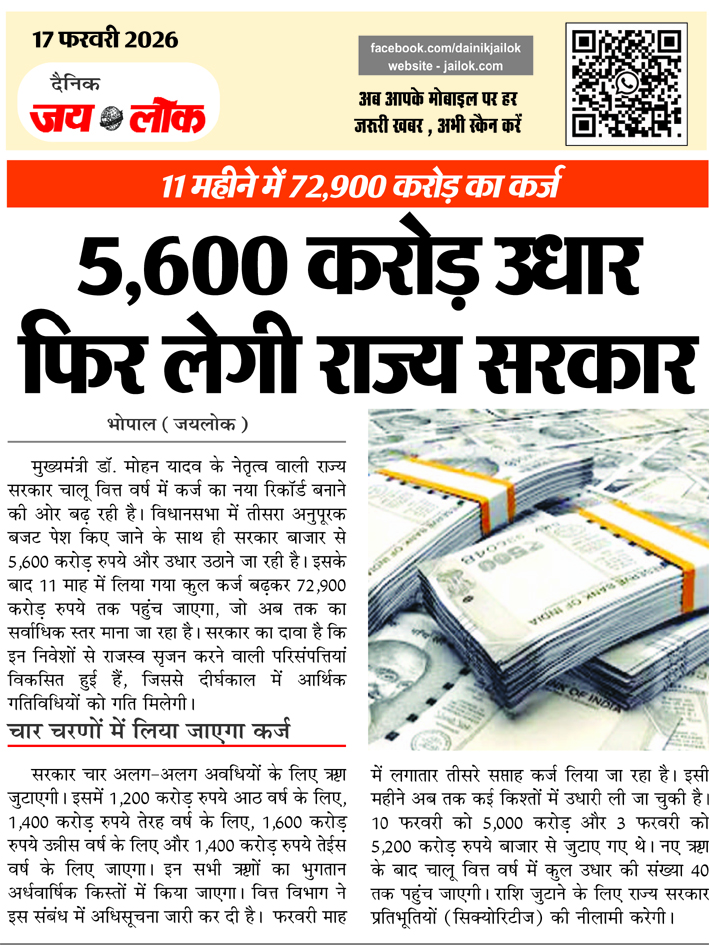 11 महीने में 72,900 करोड़ का कर्ज, 5,600 करोड़ उधार फिर लेगी राज्य सरकार