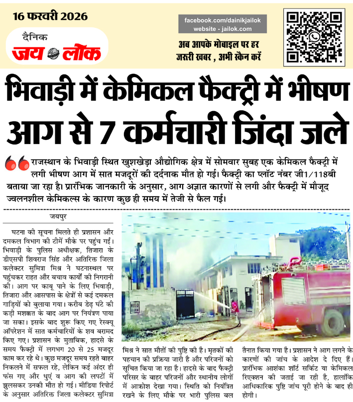भिवाड़ी में केमिकल फैक्ट्री में भीषण आग से 7 कर्मचारी जिंदा जले