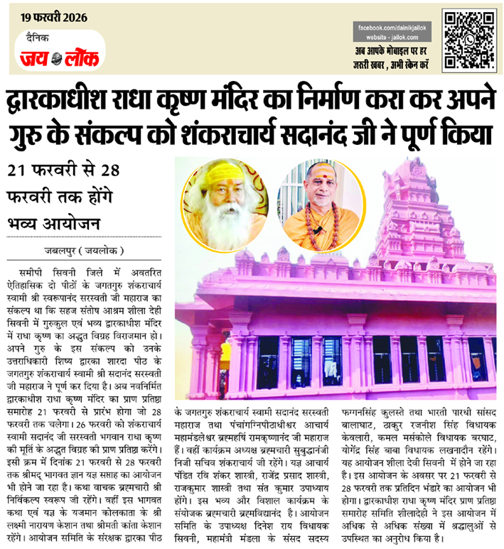 द्वारकाधीश राधा कृष्ण मंदिर का निर्माण करा कर अपने गुरु के संकल्प को शंकराचार्य सदानंद जी ने पूर्ण किया