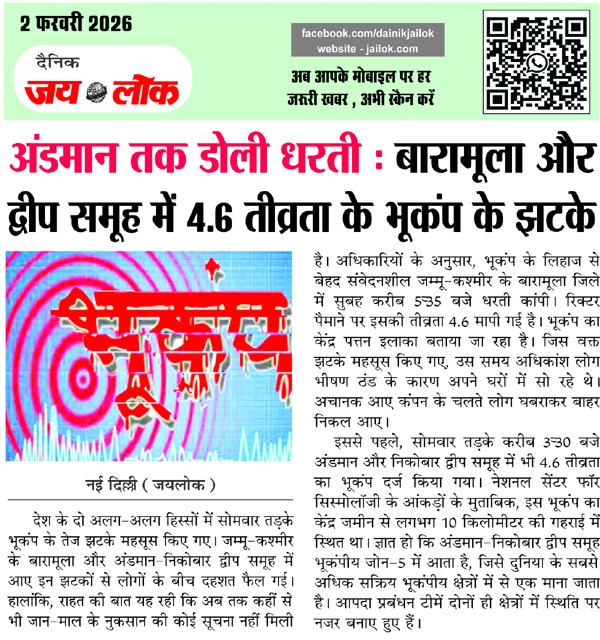 अंडमान तक डोली धरती : बारामूला और द्वीप समूह में 4.6 तीव्रता के भूकंप के झटके