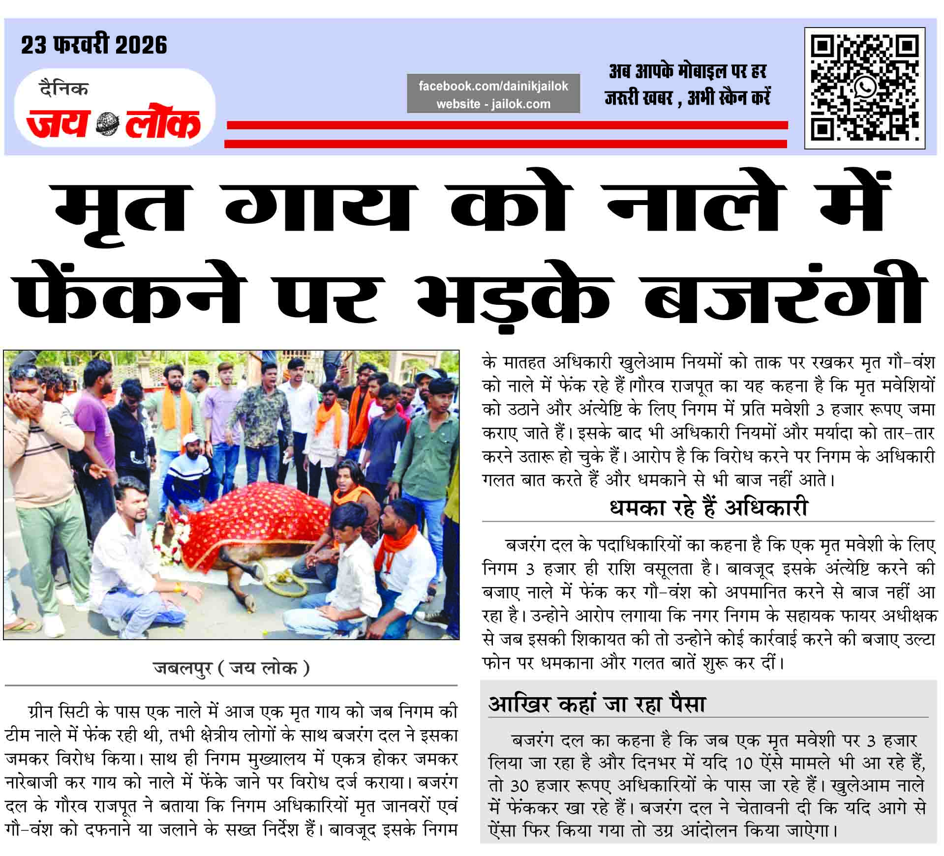 मृत गाय को नाले में फेंकने पर भड़के बजरंगी