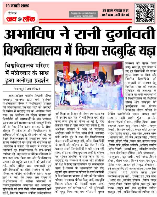 अभाविप ने रानी दुर्गावती विश्वविद्यालय में किया सदबुद्धि यज्ञ, विश्वविद्यालय परिसर में मंत्रोच्चार के साथ हुआ अनोखा प्रदर्शन