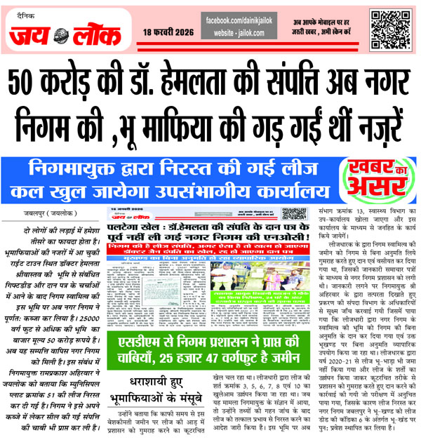 50 करोड़ की डॉ. हेमलता की संपत्ति अब नगर निगम की ,भू माफिया की गड़ गईं थीं नजऱें, निगमायुक्त द्वारा निरस्त की गई लीज कल खुल जायेगा उपसंभागीय कार्यालय, एसडीएम से निगम प्रशासन ने प्राप्त की चाबियाँ, 25 हजार 47 वर्गफुट है जमीन