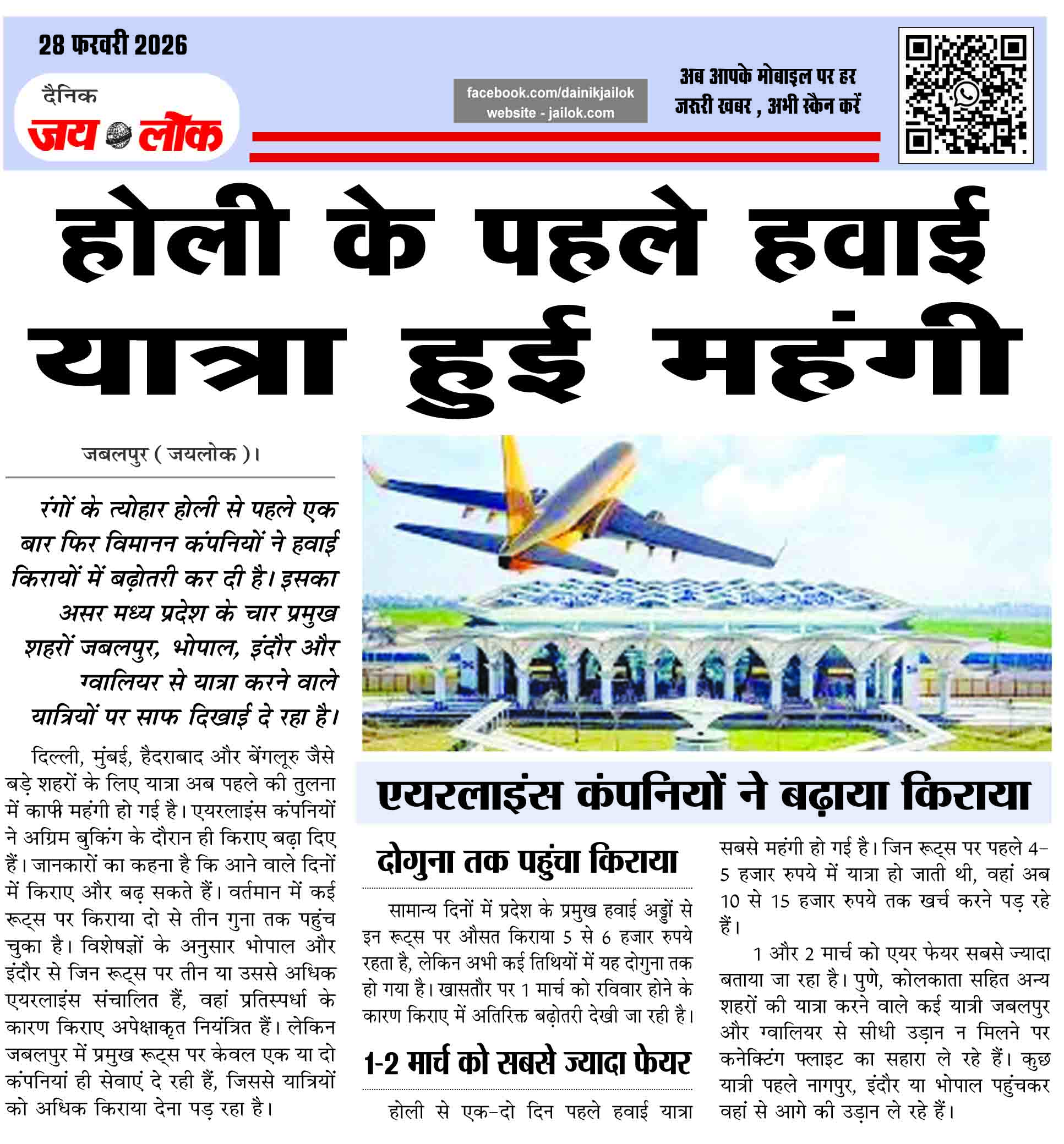 होली के पहले हवाई यात्रा हुई महंगी, एयरलाइंस कंपनियों ने बढ़ाया किराया