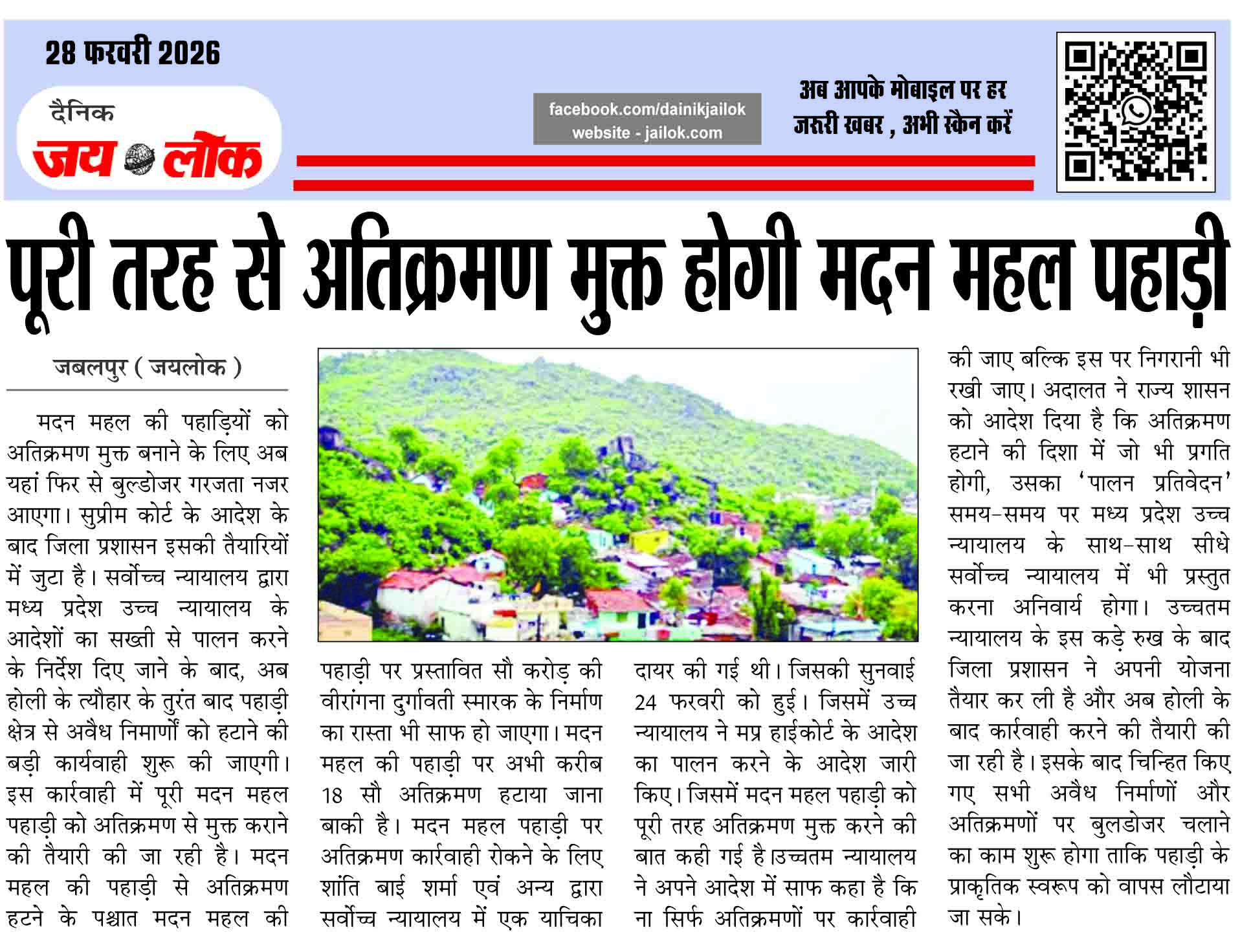 पूरी तरह से अतिक्रमण मुक्त होगी मदन महल पहाड़ी