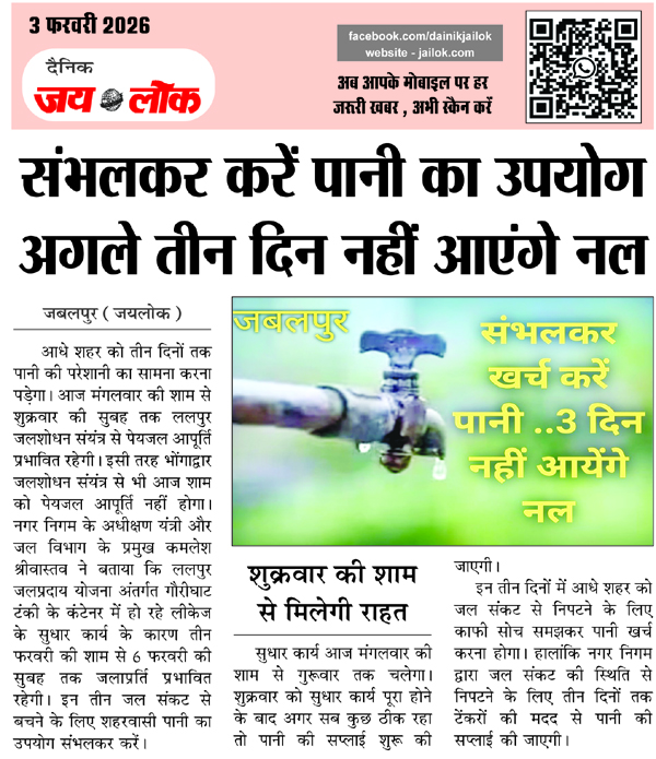 संभलकर करें पानी का उपयोग अगले तीन दिन नहीं आएंगे नल