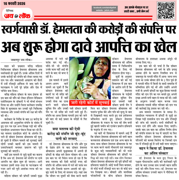 स्वर्गवासी डॉ. हेमलता की करोड़ों की संपत्ति पर अब शुरू होगा दावे आपत्ति का खेल जारी रहेगी कोर्ट में सुनवाई