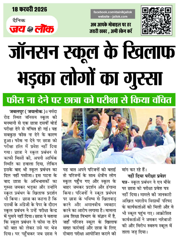 जॉनसन स्कूल के खिलाफ भडक़ा लोगों का गुस्सा, फीस ना देने पर छात्रा को परीक्षा से किया वंचित