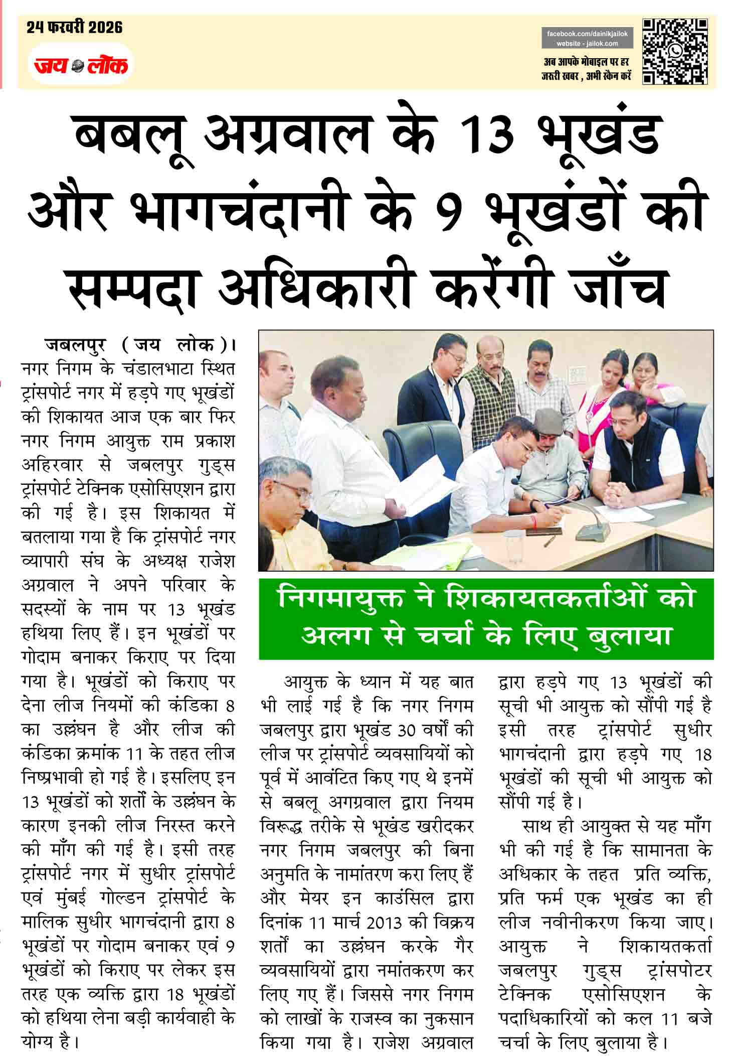 बबलू अग्रवाल के 13 भूखंड और भागचंदानी के 9 भूखंडों की सम्पदा अधिकारी करेंगी जाँच