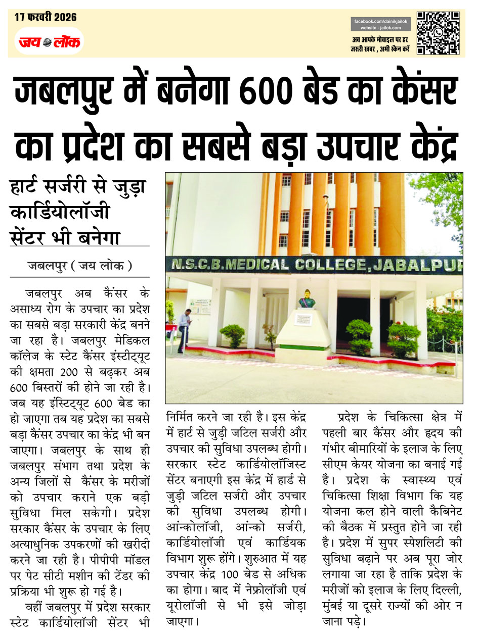 जबलपुर में बनेगा 600 बेड का केंसर का प्रदेश का सबसे बड़ा उपचार केंद्र