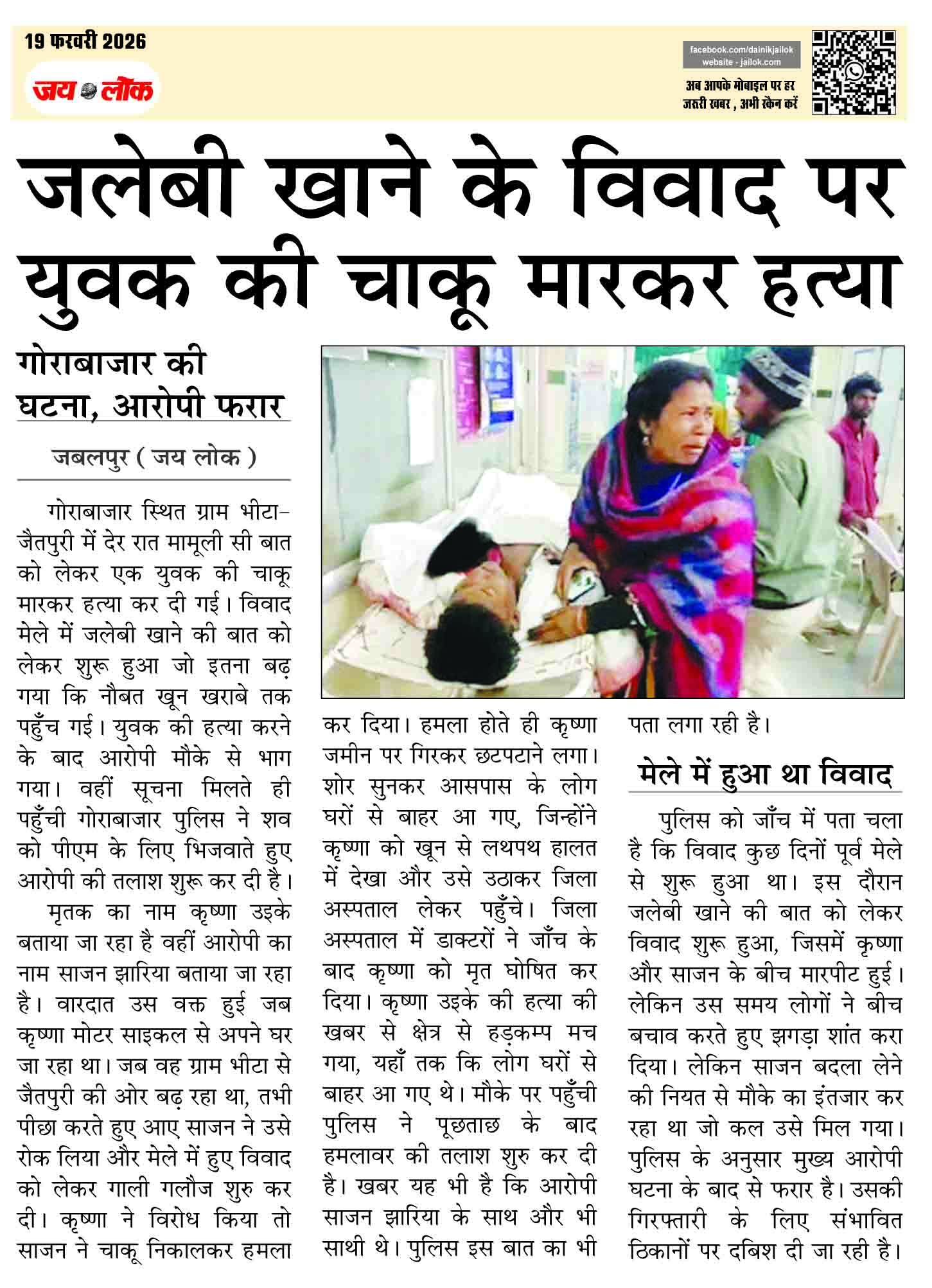 जलेबी खाने के विवाद पर युवक की चाकू मारकर हत्या, गोराबाजार की घटना, आरोपी फरार