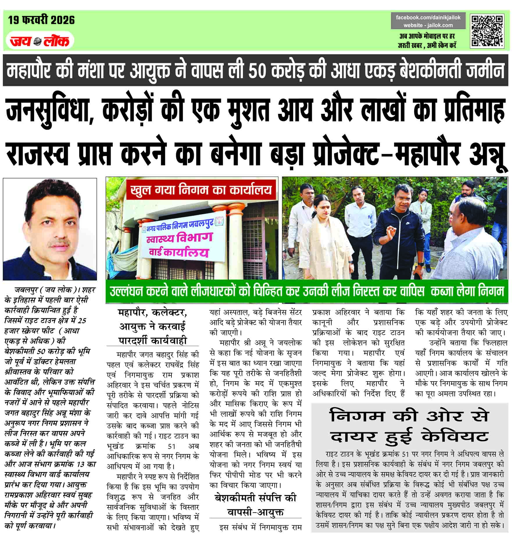 महापौर की मंशा पर आयुक्त ने वापस ली 50 करोड़ की आधा एकड़ बेशकीमती जमीन, जनसुविधा, करोड़ों की एक मुशत आय और लाखों का प्रतिमाह राजस्व प्राप्त करने का बनेगा बड़ा प्रोजेक्ट-महापौर अन्नू