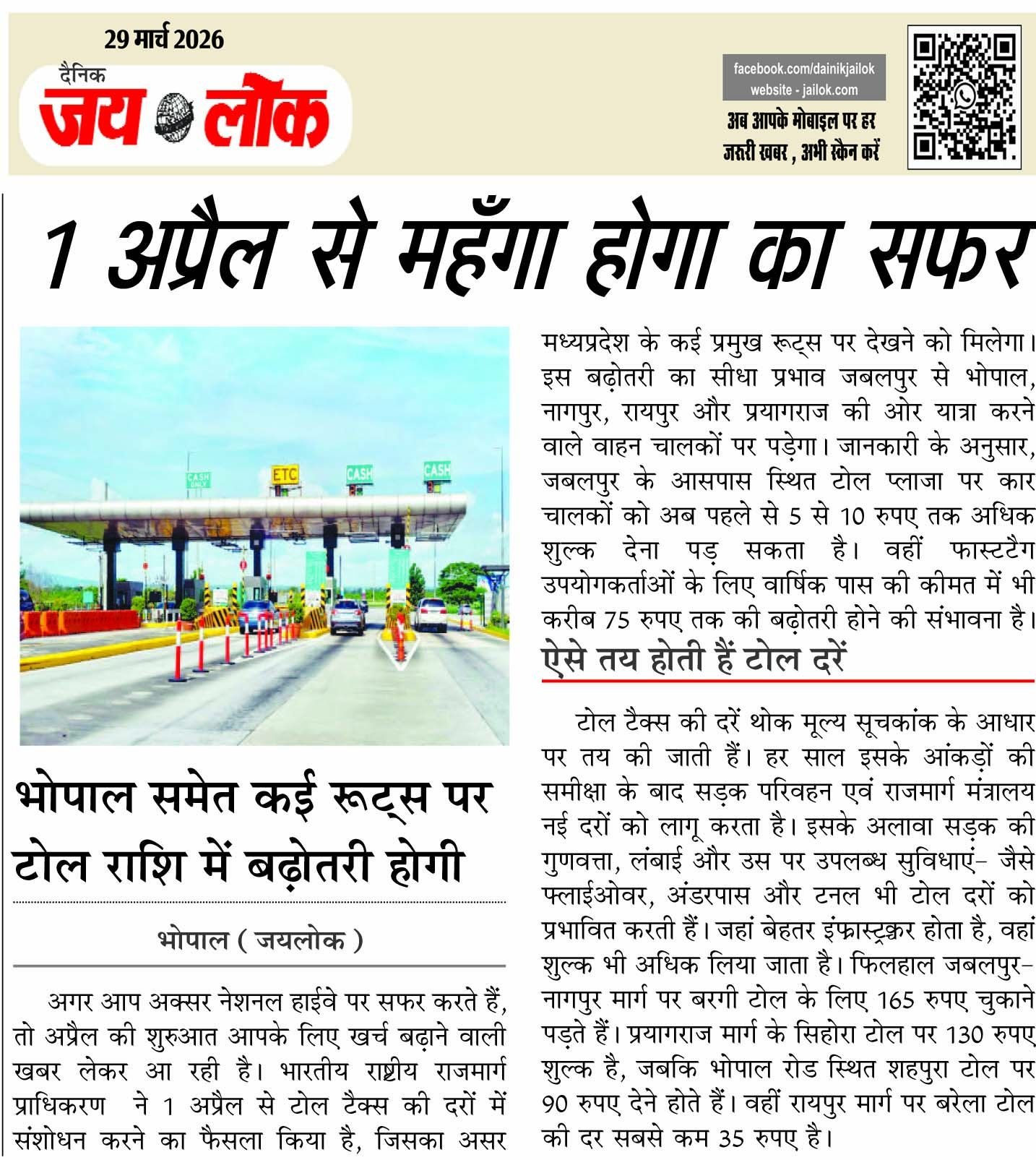 1 अप्रैल से महँगा होगा का सफर, भोपाल समेत कई रूट्स पर टोल राशि में बढ़ोतरी होगी