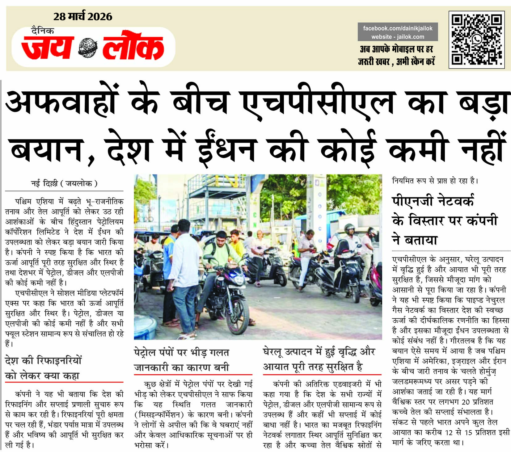 अफवाहों के बीच एचपीसीएल का बड़ा बयान, देश में ईंधन की कोई कमी नहीं
