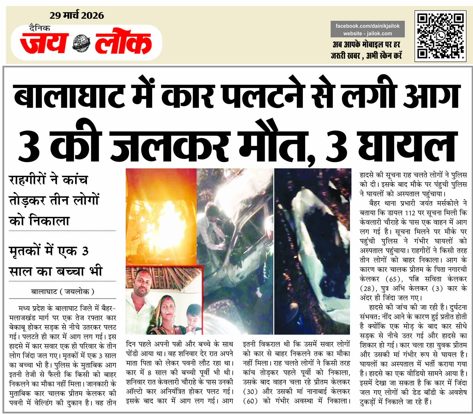 बालाघाट में कार पलटने से लगी आग 3 की जलकर मौत, 3 घायल