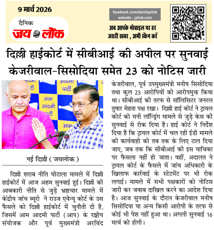दिल्ली हाईकोर्ट में सीबीआई की अपील पर सुनवाई केजरीवाल-सिसोदिया समेत 23 को नोटिस जारी