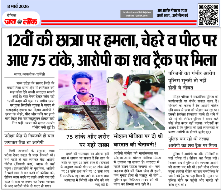 12वीं की छात्रा पर हमला, चेहरे व पीठ पर आए 75 टांके, आरोपी का शव ट्रैक पर मिला