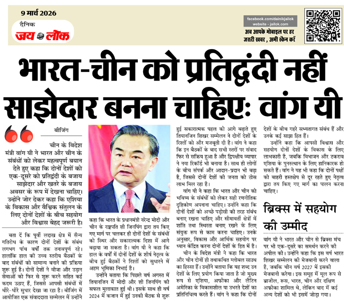 भारत-चीन को प्रतिद्वंदी नहीं साझेदार बनना चाहिए: वांग यी