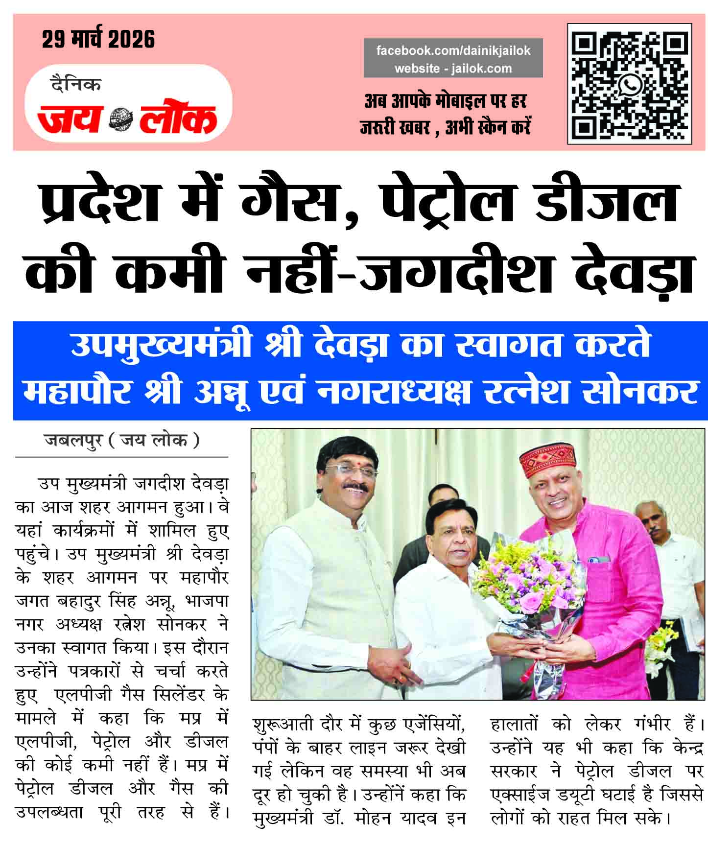 प्रदेश में गैस, पेट्रोल डीजल की कमी नहीं-जगदीश देवड़ा, उपमुख्यमंत्री श्री देवड़ा का स्वागत करते महापौर श्री अन्नू एवं नगराध्यक्ष रत्नेश सोनकर