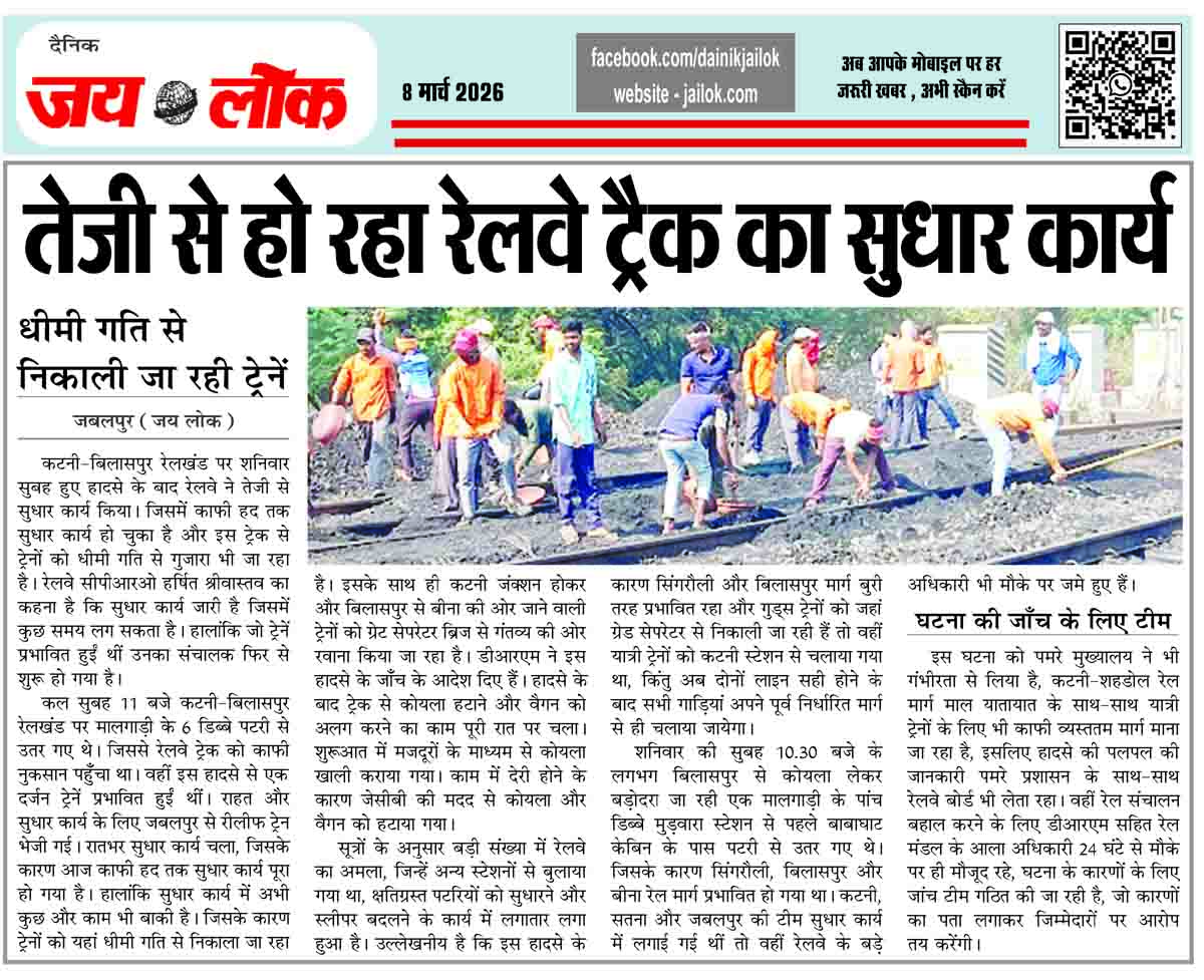 तेजी से हो रहा रेलवे ट्रैक का सुधार कार्य, धीमी गति से निकाली जा रही ट्रेनें