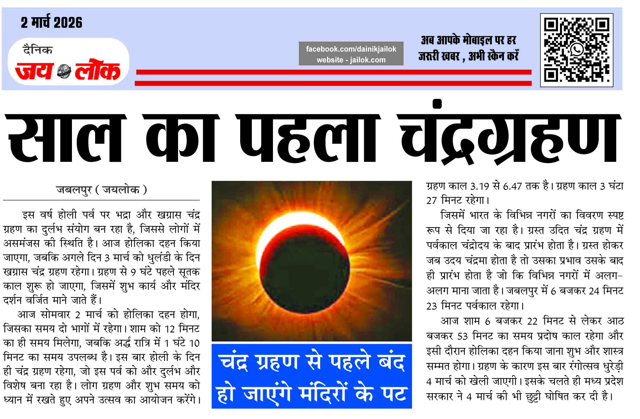 साल का पहला चंद्रग्रहण, चंद्र ग्रहण से पहले बंद हो जाएंगे मंदिरों के पट