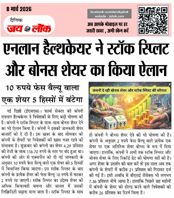 एनलान हैल्थकेयर ने स्टॉक स्प्लिट और बोनस शेयर का किया ऐलान