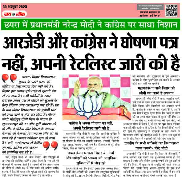 प्रधानमंत्री ने कहा कि हमारी डबल इंजन सरकार बिहार के तीर्थों और धरोहरों की भव्यता को आधुनिक सुविधाओं से जोड़ रही है…आस्था विरोधी, विकास विरोधी, वोट बैंक की राजनीति और तुष्टिकरण में डुबे आरजेडी-कांग्रेस के लोग घुसपैठियों को बचाने के अलावा कोई काम नहीं कर सकते।