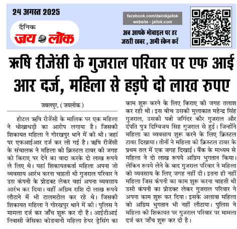 यहां शिकायतकर्ता महिला अपना जो व्यवसाय आरंभ करना चाहती थी गुजराल परिवार ने उस कंपनी के प्रोडक्ट लेकर वहां अपना व्यवसाय आरंभ कर दिया। वहीं अग्रिम राशि दो लाख रूपये लौटाने में भी टालमटोल कर रहे थे। जिसकी शिकायत महिला ने गोरखपुर थाने में की। पुलिस ने मामला दर्ज कर जाँच शुरू कर दी है। आईटीआई निवासी जेसिका कोडवानी महिला हेयर ड्रेसिंग का काम शुरू करने के लिए किराए की जगह तलाश कर रही थी। इस बीच उसकी मुलाकात महेन्द्र सिंह गुजराल, उसकी पत्नी जगिंदर कौर गुजराल और दंपति पुत्र दिग्विजय ङ्क्षसह गुजराल से हुई।