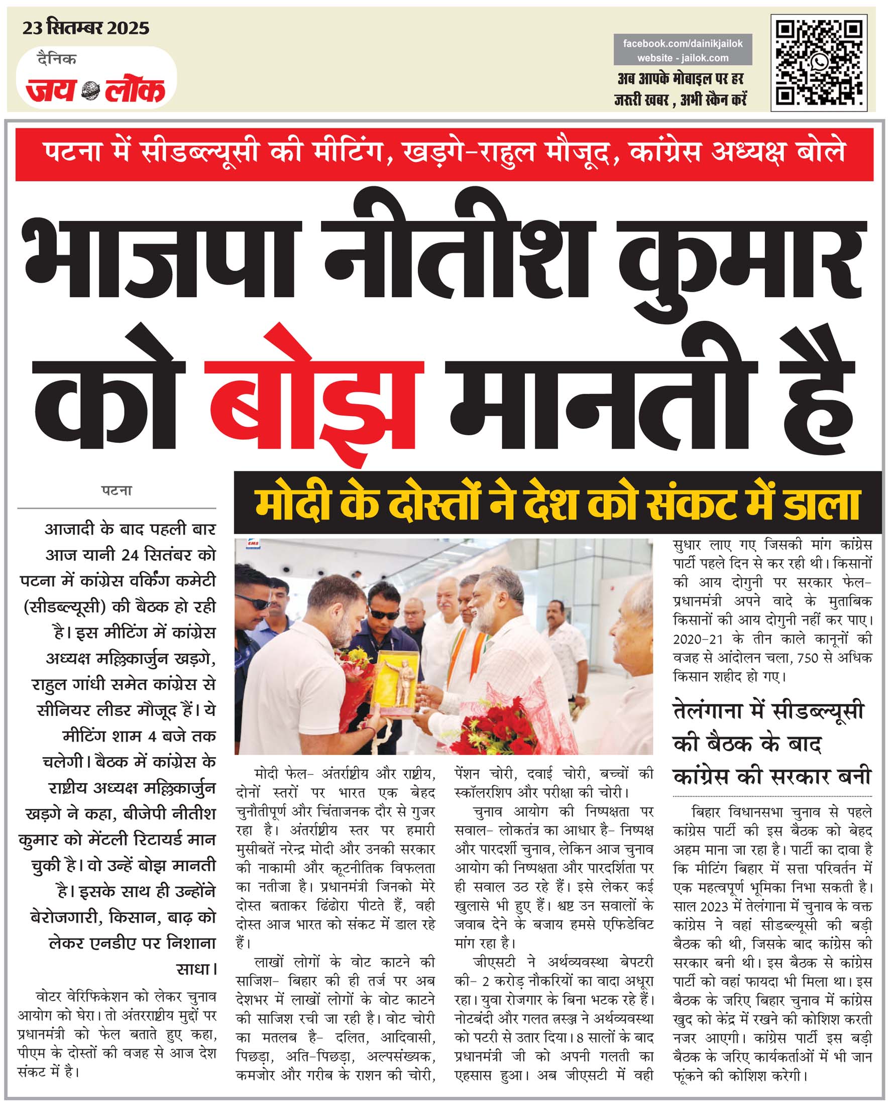 पटना में सीडब्ल्यूसी की मीटिंग, खडग़े-राहुल मौजूद, कांग्रेस अध्यक्ष बोले भाजपा नीतीश कुमार को बोझ मानती है
