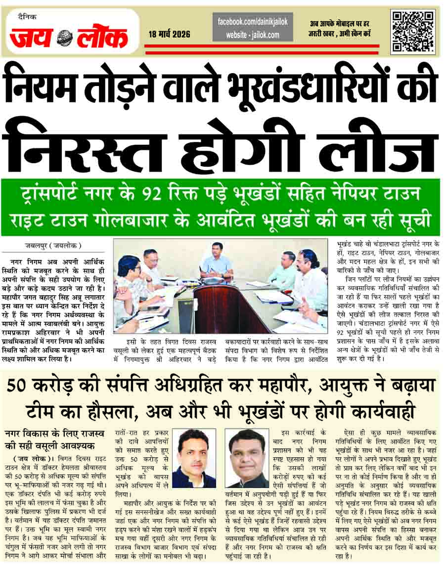 जबलपुर (जय लोक)।@परितोष वर्मा