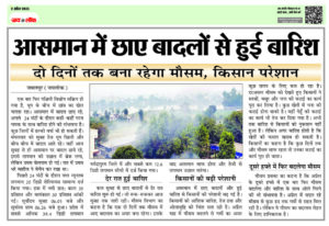 दो दिनों तक बना रहेगा मौसम, किसान परेशान जबलपुर (जयलोक)। एक बार फिर पश्चिमी विक्षोप सक्रिय हो गया है, धूप के बीच में छांव का खेल चलता रहा। आसमान में बादल छाए रहे, अगले 24 घंटों के दौरान कहीं-कहीं गरज चमक के साथ बारिश होने की संभावना है। कुछ जिलों में हल्की वर्षा भी हो … Continue reading आसमान में छाए बादलों से हुई बारिश