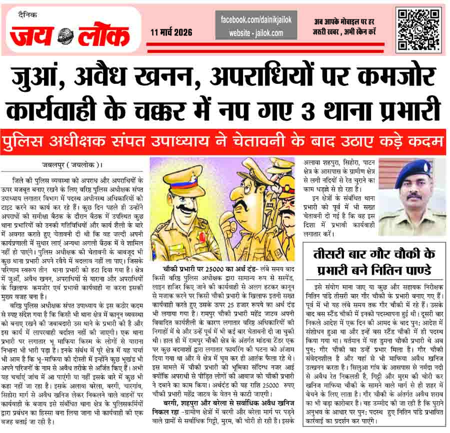 जबलपुर (जयलोक)। शहर की चरमरा रही यातायात व्यवस्था और जगह-जगह हुए अतिक्रमण बहुत विकराल समस्या का स्वरूप ले चुके हैं। विगत दिवस कैबिनेट मंत्री राकेश सिंह ने सर्किट हाउस में महापौर विधायकों और जिले के वरिष्ठ प्रशासनिक अधिकारियों की इस विषय पर एक बैठक ली थी। बैठक में उपस्थित सभी जनप्रतिनिधियों ने अपने स्तर पर समस्याओं के निराकरण और मुख्य समस्याओं के बारे में जानकारी उपलब्ध कराई थी। इसके बाद अब जिला प्रशासन, पुलिस प्रशासन और नगर निगम प्रशासन पूरी तरीके से एक्शन मोड में नजर आ रहा है। कलेक्टर दीपक सक्सेना ने स्पष्ट कहा है कि इस सप्ताह से अतिक्रमण के खिलाफ सख्ती से कार्यवाही की जाएगी। पुलिस अधीक्षक संपत उपाध्याय ने कहा कि अभी अलग-अलग टीम में अलग-अलग स्थान पर स्थान का निरीक्षण कर चयन कर रही हैं और यह देखा जा रहा है कि किस स्थान पर किस प्रकार की कार्यवाही की आवश्यकता है। जल्द ही शहर की सडक़ों को अतिक्रमण और यातायात के अवरोधों से मुक्त किया जाएगा।