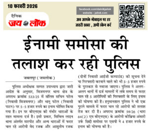 जबलपुर (जयलोक)। पुलिस अधीक्षक सम्पत उपाध्याय द्वारा जारी आदेश के अनुसार, विजयनगर थाना क्षेत्र के अपराध क्रमांक 533/25 में संलिप्त सचिन पटेल (निवासी विजयनगर) और भानू पटेल (निवासी पाटन) पर 5-5 हजार रुपये का इनाम घोषित किया गया है। इन पर बीएनएस की गंभीर धाराओं के तहत मामला दर्ज है। इसी प्रकार, सिविल लाइन थाना अंतर्गत … Continue reading ईनामी समोसा की तलाश कर रही पुलिस