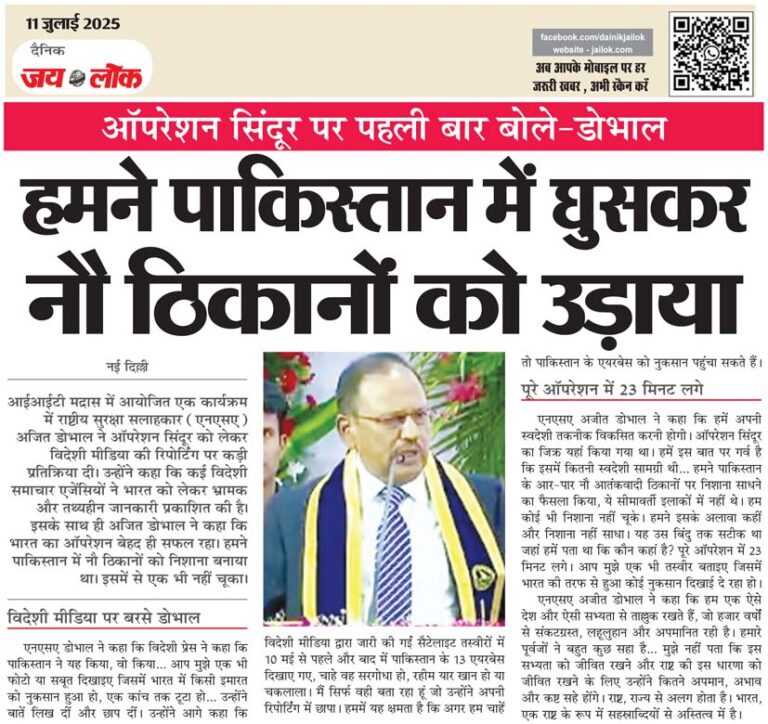 ऑपरेशन सिंदूर पर पहली बार बोले-डोभाल, हमने पाकिस्तान में घुसकर नौ ठिकानों को उड़ाया