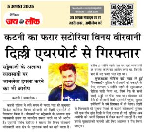 कटनी (जयलोक)। कटनी पुलिस ने लंबे समय से फरार चल रहे कुख्यात क्रिकेट सटोरिया विनय वीरवानी को दिल्ली एयरपोर्ट से गिरफ्तार किया है। वीरवानी पर सट्टेबाजी के अलावा एक व्यवसायी युवक पर जानलेवा हमला करने का भी आरोप है। एएसपी संतोष डेहरिया ने बताया कि विनय वीरवानी कोतवाली थाना क्षेत्र के गुरुनानक वार्ड का रहने … Continue reading कटनी का फरार सटोरिया विनय वीरवानी दिल्ली एयरपोर्ट से गिरफ्तार सट्टेबाजी के अलावा व्यवसायी पर जानलेवा हमला करने का भी आरोप