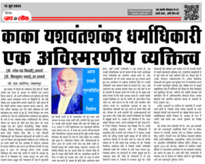 आज उनकी पुण्यतिथि पर विशेष (डॉ. नरेश चंद्र त्रिपाठी),प्राचार्य (डॉ. शिवकुमार व्यास),उप प्राचार्य जी. एस. कॉलेज, जबलपुर इस संसार में विरले ही व्यक्तित्व ऐसे होते हैं, जिन्हें उनकी यश गाथा के आधार पर सदियों तक स्मरण किया जाता है, जो अपने व्यक्तित्व एवं कृतित्व की ऐसी अमित आभा जनमानस पटल पर बिखेरते हैं, जो उन्हें … Continue reading काका यशवंतशंकर धर्माधिकारी एक अविस्मरणीय व्यक्तित्व