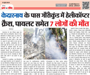 केदारनाथ के पास गौरीकुंड में हेलीकॉप्टर क्रैश, पायलट समेत 7 लोगों की मौत