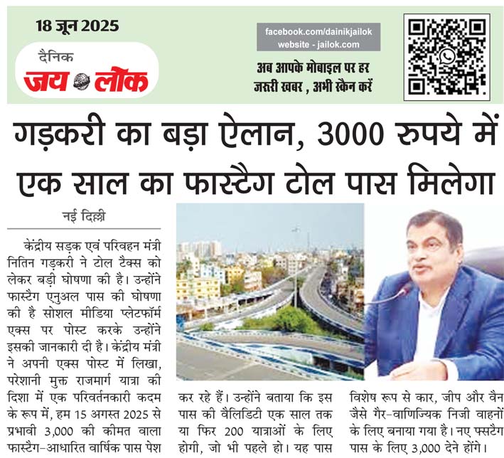 केंद्रीय मंत्री ने अपनी एक्स पोस्ट में लिखा, परेशानी मुक्त राजमार्ग यात्रा की दिशा में एक परिवर्तनकारी कदम के रूप में, हम 15 अगस्त 2025 से प्रभावी 3,000 की कीमत वाला फास्टैग-आधारित वार्षिक पास पेश कर रहे हैं। उन्होंने बताया कि इस पास की वैलिडिटी एक साल तक या फिर 200 यात्राओं के लिए होगी, जो भी पहले हो।