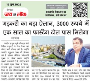 गडक़री का बड़ा ऐलान, 3000 रुपये में एक साल का फास्टैग टोल पास मिलेगा