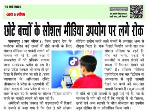जबलपुर (जय लोक)। जिस प्रकार देश के कर्नाटक सहित कई राज्यों में छोटे बच्चों के लिए सोशल मीडिया पर पाबंदी लगाने की घोषणा की गई है, उसी तरह से मध्यप्रदेश में भी प्रतिबंध लगाया जाना आवश्यक प्रतीत हो रहा है। आंध्रा प्रदेश सरकार भी जल्द ही इस दिशा में निर्णय लेना जा रही है। उच्च … Continue reading छोटे बच्चों के सोशल मीडिया उपयोग पर लगे रोक