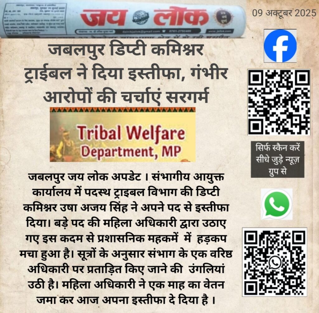जबलपुर डिप्टी कमिश्नर ट्राईबल ने दिया इस्तीफा, गंभीर आरोपों की चर्चाएं सरगर्म