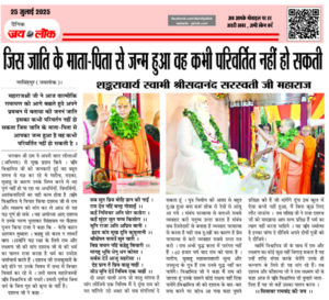 नरसिंहपुर (जयलोक)। महाराजश्री जी ने आज वाल्मीकि रामायण को आगे बढाते हुये अपने प्रवचन में बताया की जननं जाति इसका कभी परिवर्तन नहीं हो सकता जिस जाति के माता-पिता से आपका जन्म हुआ है वह कभी परिवर्तित नहीं हो सकती है । भगवान श्री राम ने अपनी बाल लीलाओं (अभिनय) से सुख प्रदान किये । … Continue reading जिस जाति के माता-पिता से जन्म हुआ वह कभी परिवर्तित नहीं हो सकती शङ्कराचार्य स्वामी श्रीसदानंद सरस्वती जी महाराज