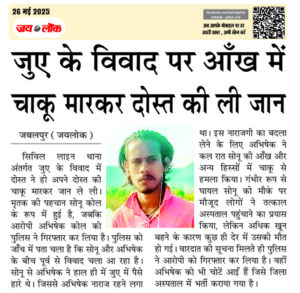 जबलपुर (जयलोक)। सिविल लाइन थाना अंतर्गत जुए के विवाद में दोस्त ने ही अपने दोस्त की चाकू मारकर जान ले ली। मृतक की पहचान सोनू कोल के रूप में हुई है, जबकि आरोपी अभिषेक कोल को पुलिस ने गिरफ्तार कर लिया है। पुलिस को जाँच में पता चला है कि सोनू और अभिषेक के बीच … Continue reading जुए के विवाद पर आँख में चाकू मारकर दोस्त की ली जान