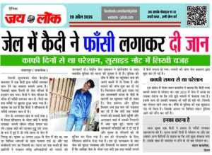 जेल में कैदी ने फाँसी लगाकर दी जान, काफी दिनों से था परेशान, सुसाइड नोट में लिखी वजह