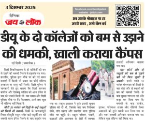 नई दिल्ली (जयलोक)। दिल्ली विश्वविद्यालय के दो कॉलेजों को बम से उड़ाने की धमकी मिलने से हडक़ंप मच गया। हालांकि, पुलिस द्वारा मौके पर की गई सघन तलाशी में किसी भी प्रकार का कोई संदिग्ध उपकरण या वस्तु नहीं मिली। दिल्ली पुलिस ने जानकारी देते हुए बताया कि दिल्ली रामजस कॉलेज और देशबंधु कॉलेज को … Continue reading डीयू के दो कॉलेजों को बम से उड़ाने की धमकी, खाली कराया कैंपस
