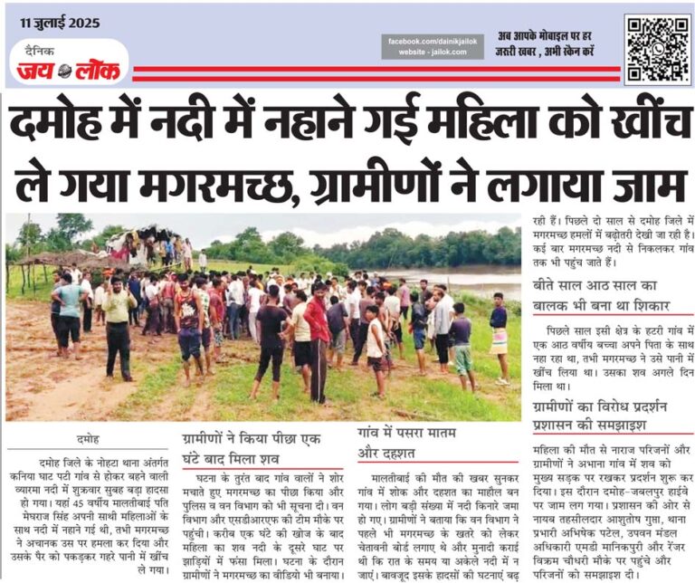 दमोह में नदी में नहाने गई महिला को खींच ले गया मगरमच्छ, ग्रामीणों ने लगाया जाम